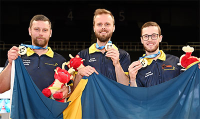 Denmark had to work harder to beat third-seed, Julian Dinham, Luke Doyle and Blake Walsh of Australia, with a 238-218 win in the third match of the other semi-finals. The Aussies won the first match 213-212 but lost to Denmark, 174-194 in the second match.